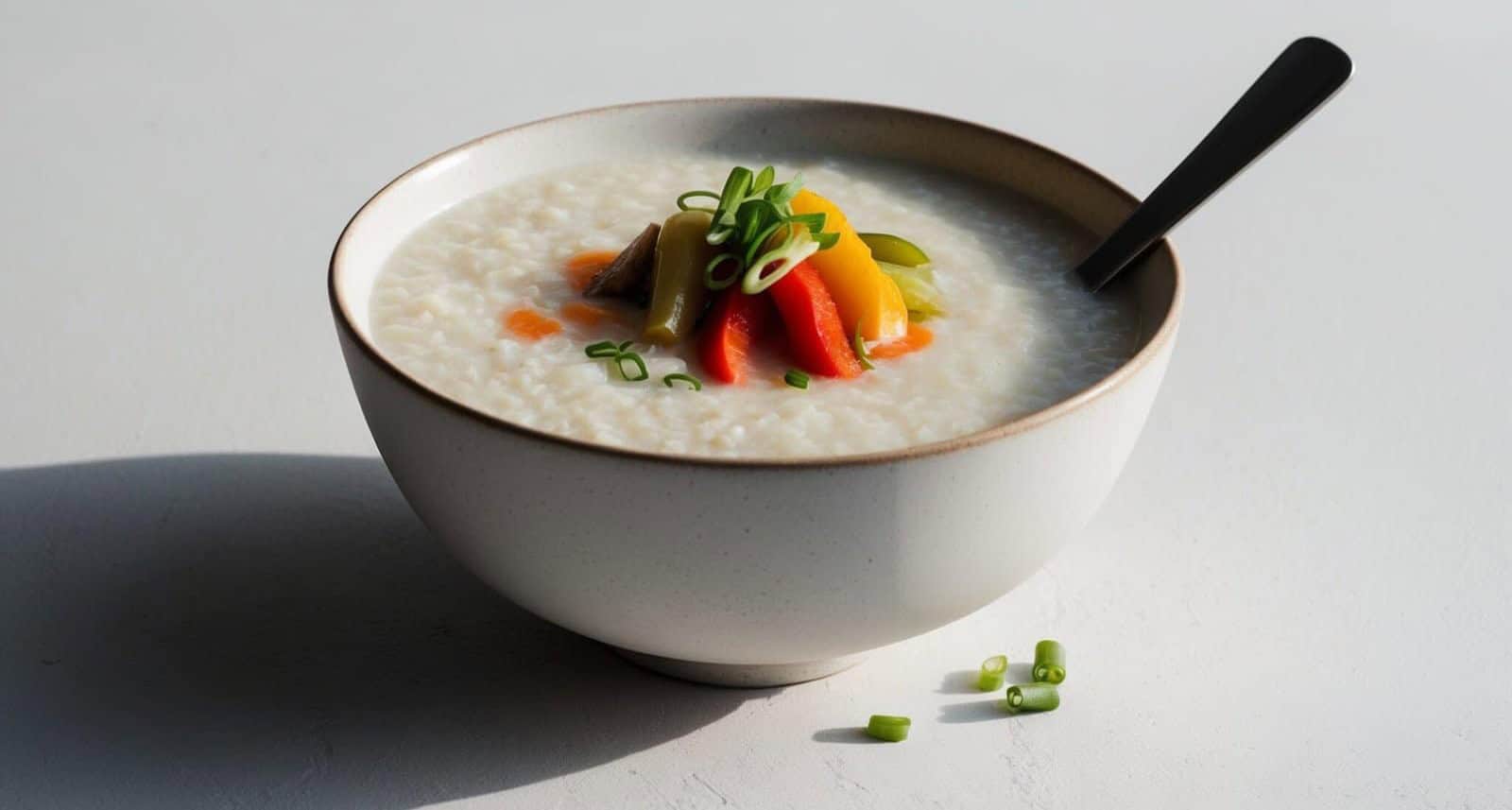 - Reduce heat to low and simmer, stirring occasionally, for about 45 minutes or until the rice breaks down and the congee reaches a thick, porridge-like consistency.