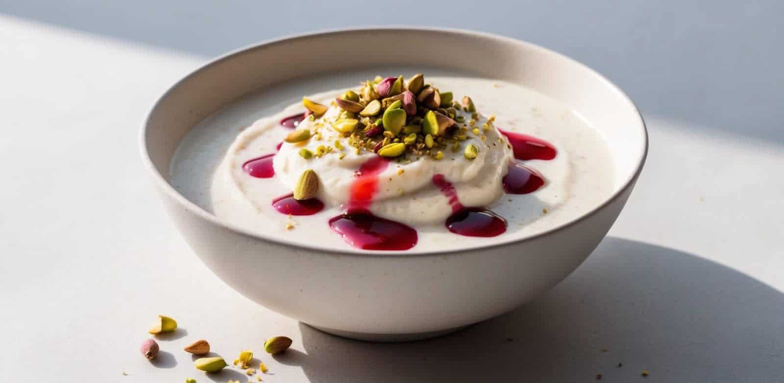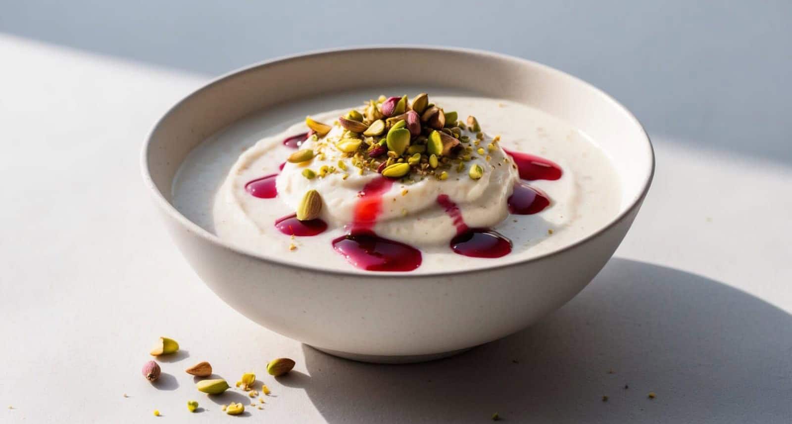 - Before serving, drizzle rose water syrup over the pudding and sprinkle with chopped pistachios or almonds.1/4 cup pistachios, 2 tablespoons rose water syrup