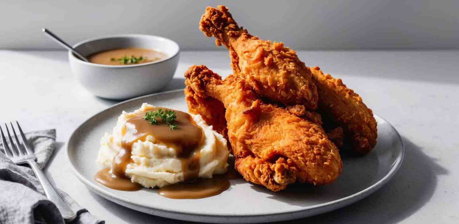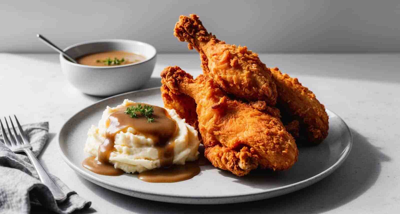 Crispy Fried Chicken with Mashed Potatoes and Gravy