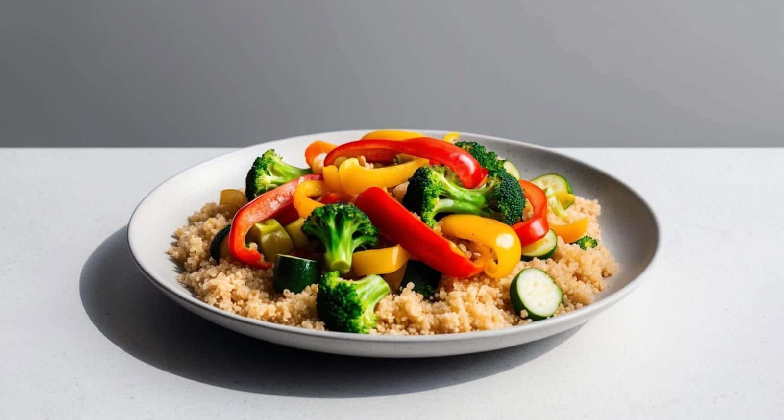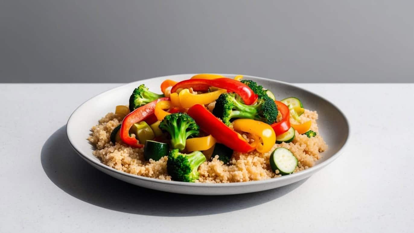 - Serve the vegetable stir-fry over a bed of cooked quinoa. Sprinkle with sesame seeds.1 tablespoon sesame seeds