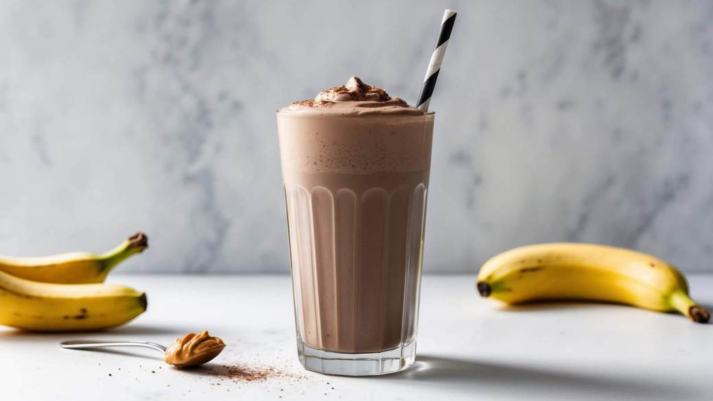 - In a blender, add Ladder Chocolate Plant-Protein Powder, frozen banana, peanut butter, vanilla almond milk, and a handful of ice cubes.1 packet Protein Powder, 1 tablespoon peanut butter, 10 oz almond milk, Handful ice cubes