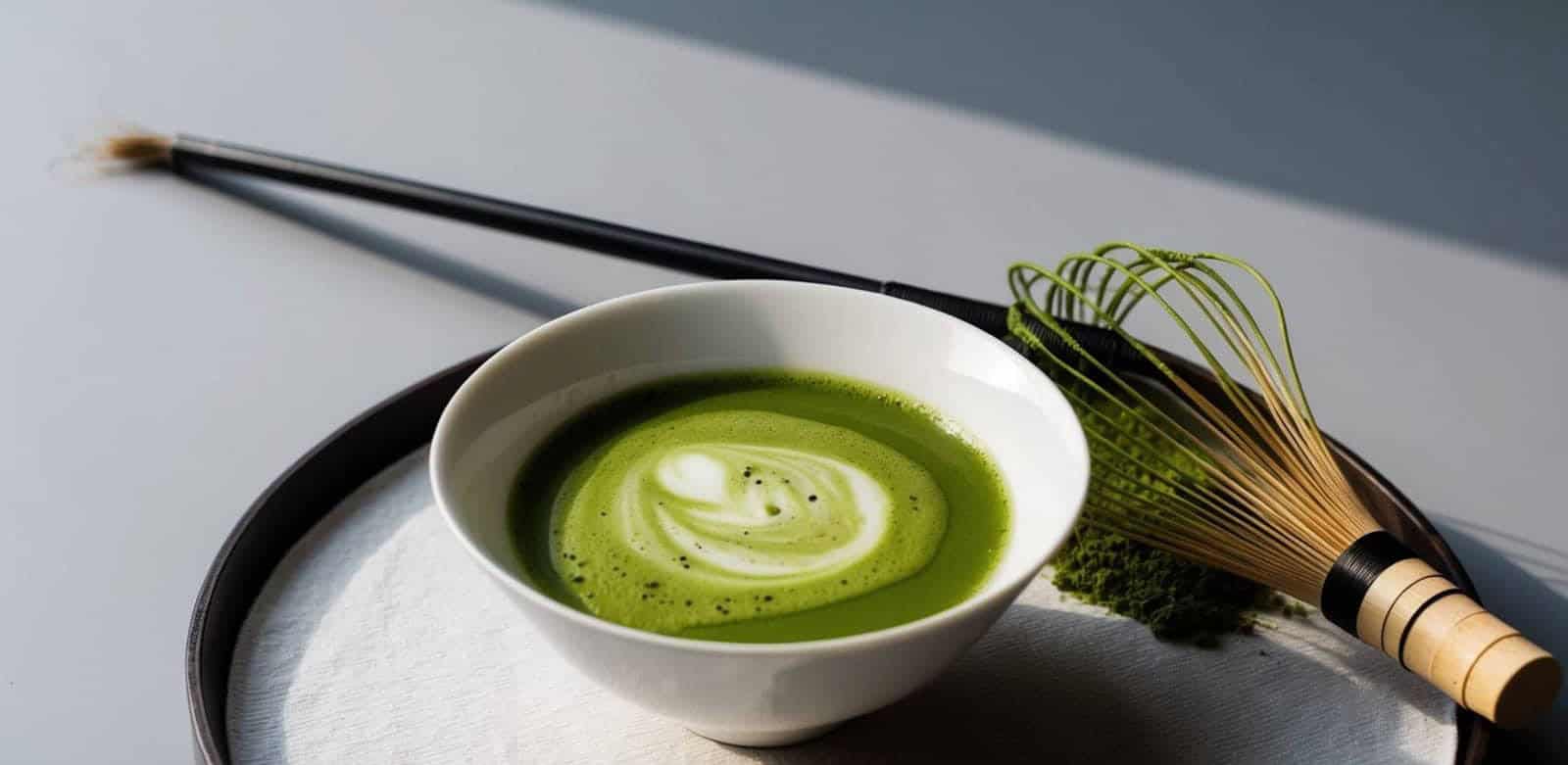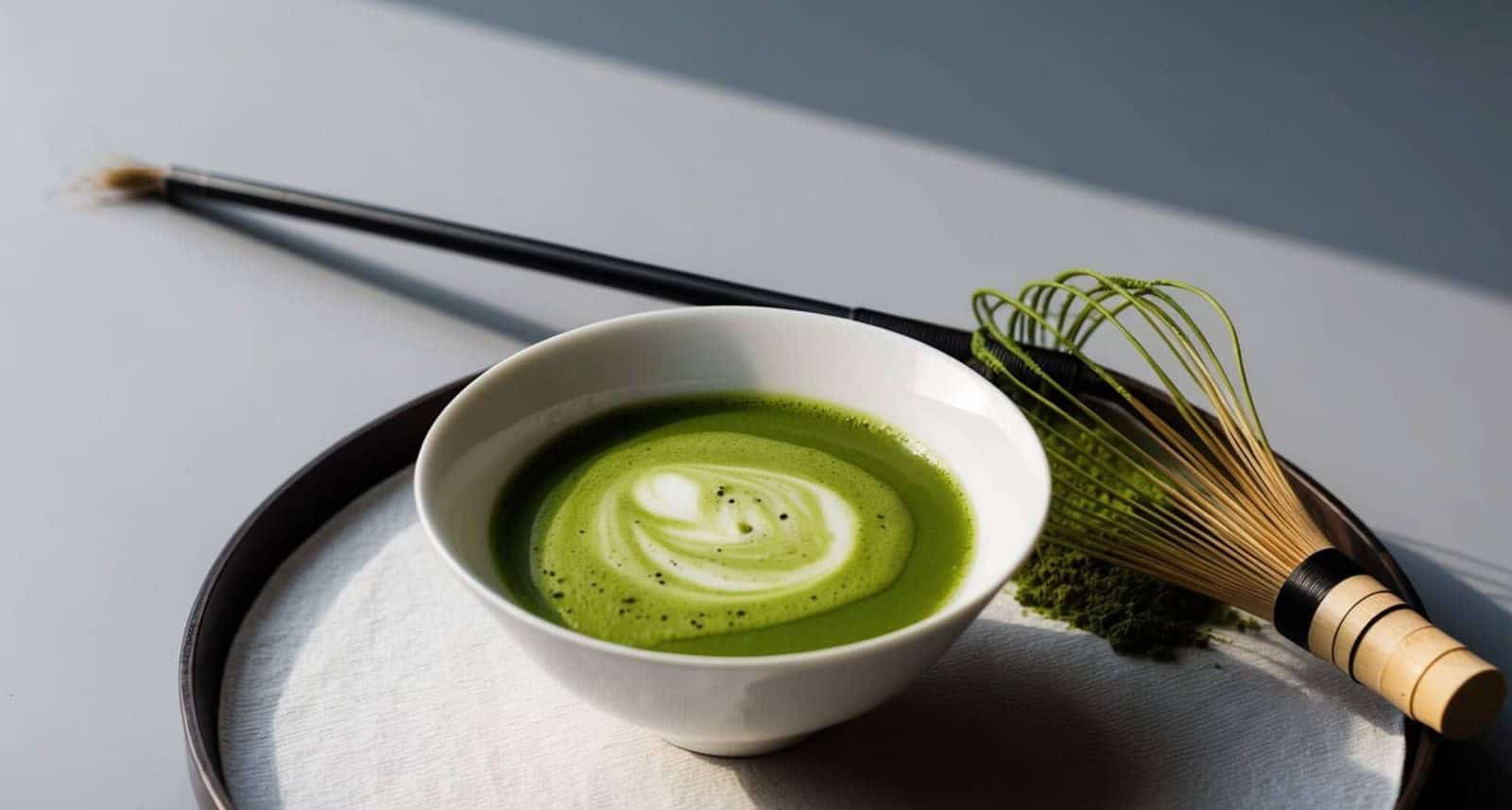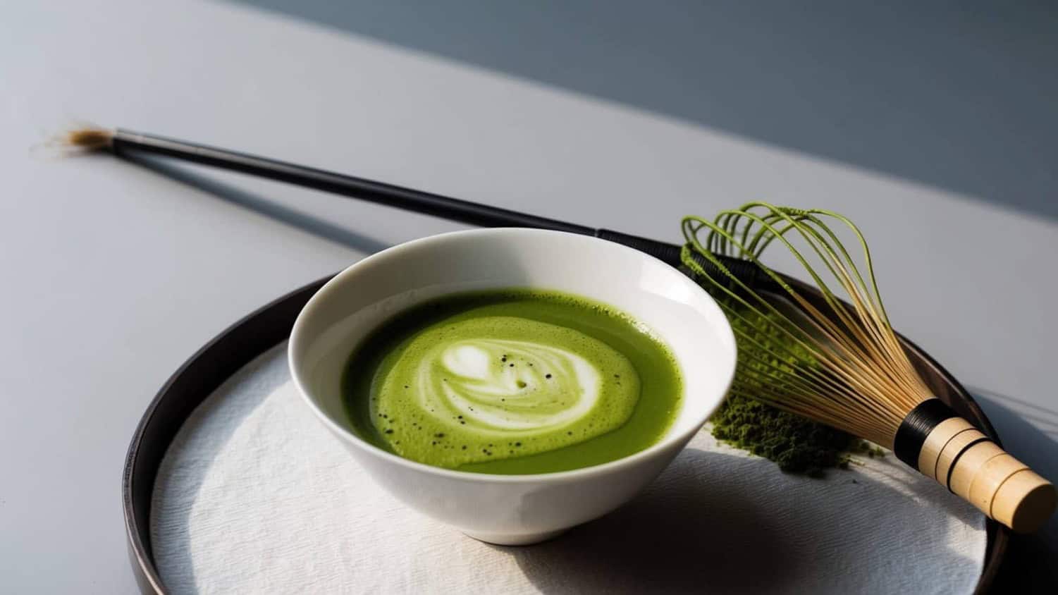 A strong, finely ground green tea powder whisked into hot water, offering a rich, slightly bitter taste with a vibrant green color, perfect for a morning boost.