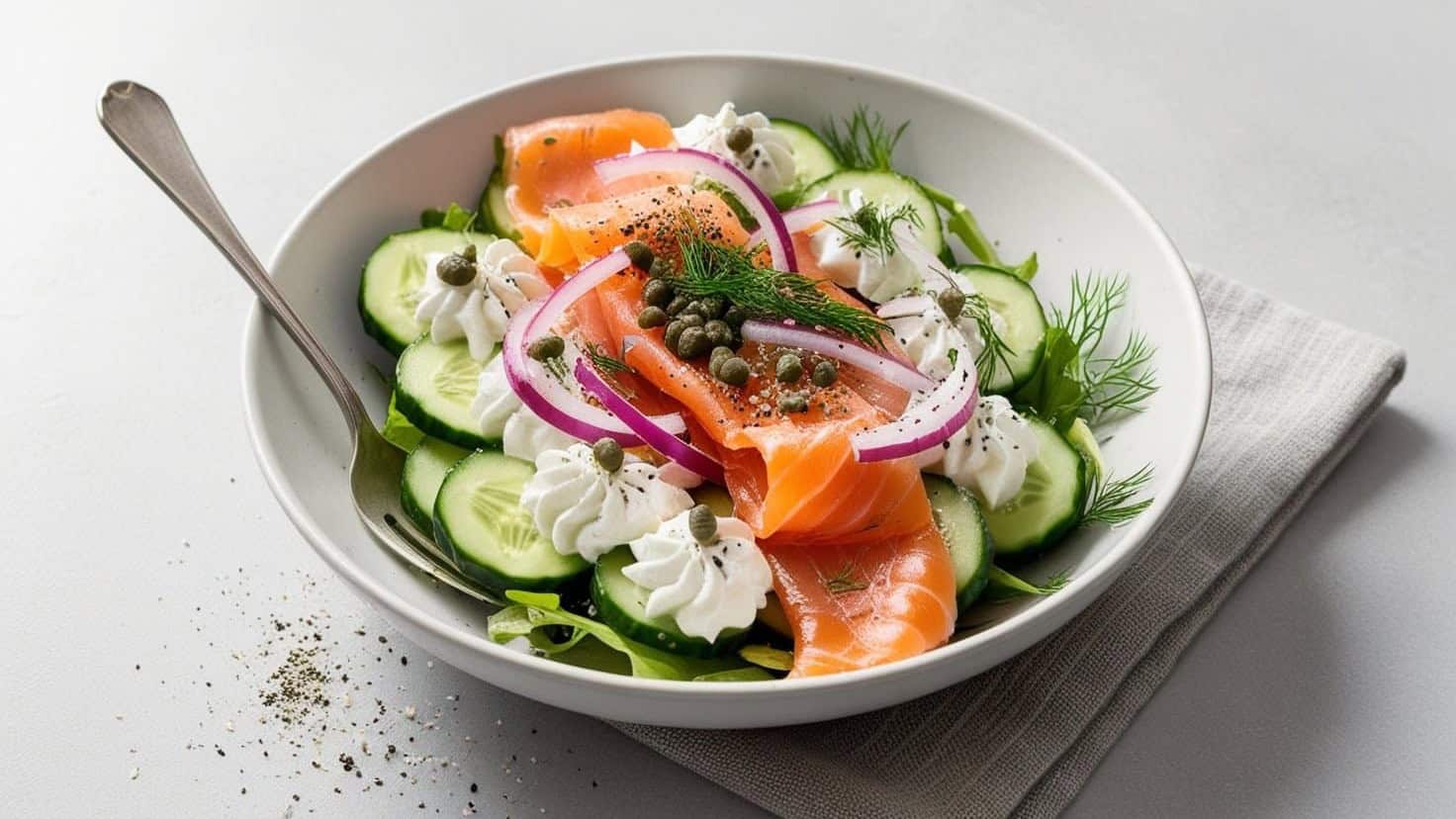 Salmon Cream Cheese Bagel Cucumber Salad Recipe