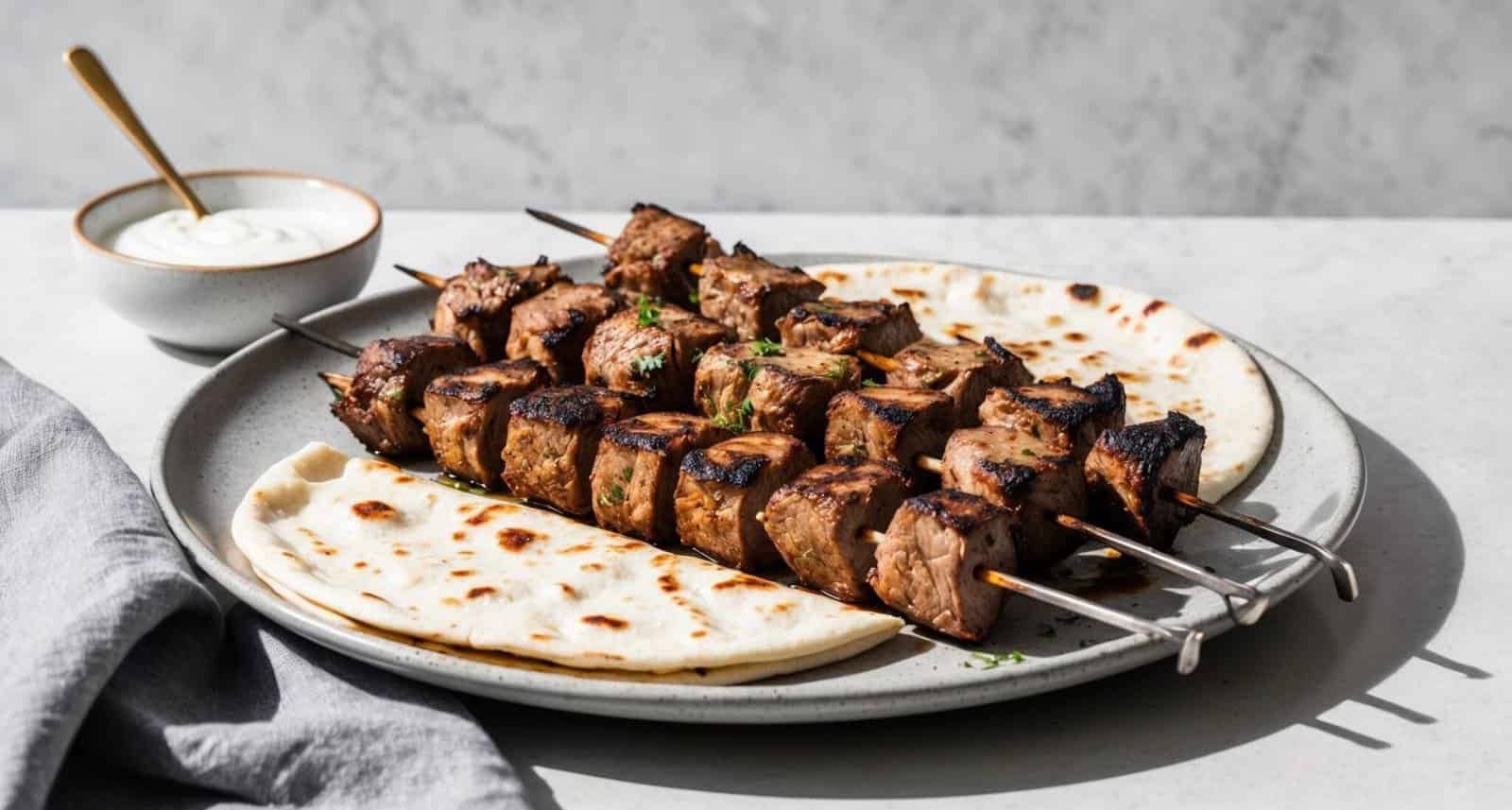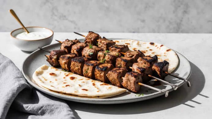 - Serve: Remove the lamb kebabs from the grill and let them rest for a few minutes. Garnish with fresh parsley and serve with flatbreads and yogurt sauce on the side.Fresh parsley, Flatbreads, Yogurt sauce