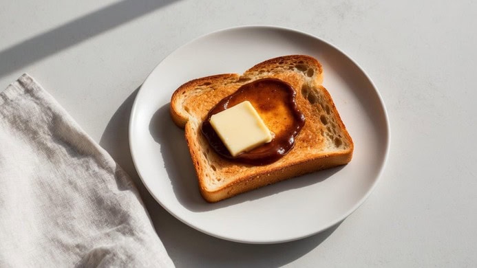 - Place a pat of cold butter (1/2 tablespoon) on two of the kaya-spread slices.2 tbsp unsalted butter