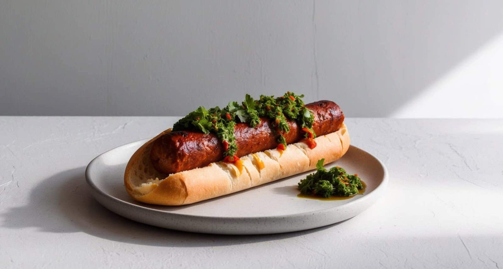 - Slice the rolls or baguettes lengthwise, place a sausage inside each, and top generously with chimichurri.4 crusty rolls